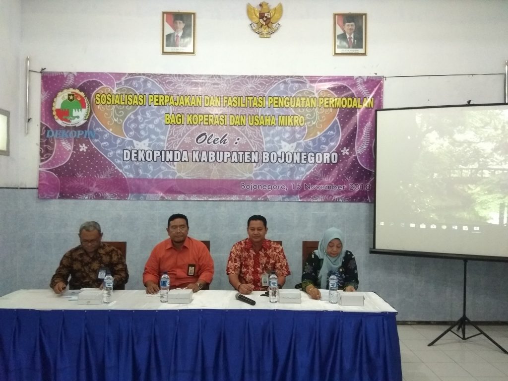 Bojonegoro-Dalam upaya meningkatkan pemahaman peraturan pajak dan meningkatkan akses modal untuk Koperasi dan UKM, Dekopinda Kabupaten Bojonegoro adakan kegiatan Sosialisasi Perpajakan dan fasilitasi Permodalan Bagi Koperasi dan UKM. Kamis (15/11/2018).