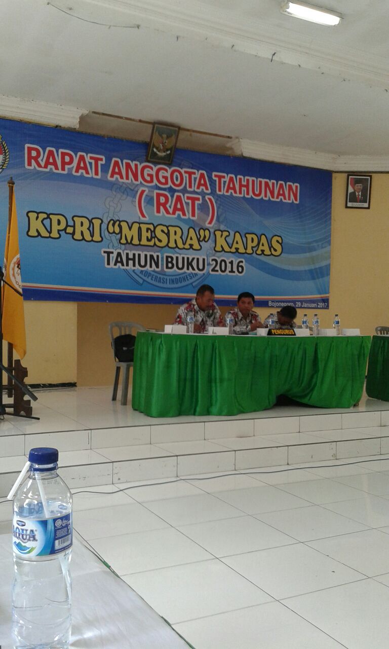 Rapat Anggota Tahunan (RAT) Tahun Buku 2016 KPRI Mesra Kecamatan Kapas, Kabupaten Bojonegoro. Bertempat di Gedung Maharani Bakorwil Bojonegoro. Minggu, (29/1/17). Dalam kegiatan RAT tersebut disampaikan Laporan Pertanggungjawaban Pengurus dan Pengawas KPRI Mesra Tahun buku 2016. Sebanyak 370 orang anggota dari 447 orang anggota yang diundang mengikuti RAT. Hadir dalam kegiatan tersebut Perwakilan dari Dinas Koperasi […]