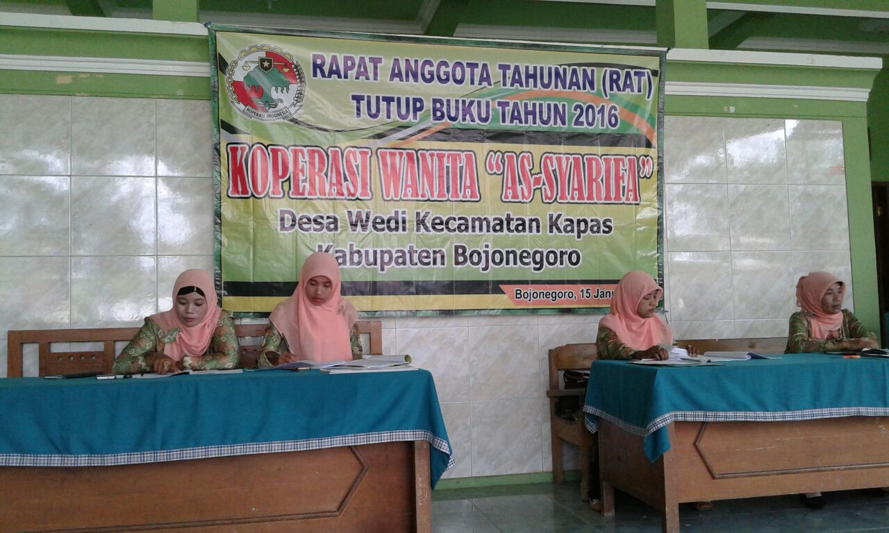 Koperasi Wanita As-Syarifa Desa Wedi Kec. Kapas Kab. Bojonegoro adakan Rapat Anggota Tahunan (RAT) Tahun Buku 2016, serta Rapat Anggota Rencana Kerja (RARK) Tahun Buku 2017. Minggu (15/1/17) Kegiatan RAT dan RARK Kopwan As-Syarifa tersebut bertempat di Balai Desa Wedi Kec. Kapas Kab. Bojonegoro. Dalam kegiatan tersebut dihadiri 60 orang anggota, hadir pula Sunarini Dinas […]